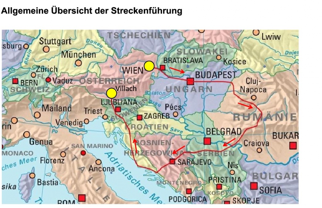 Schweiz - Österreich - Slowakei - Ungarn - Rumänien - Serbien - Bosnien-Herzigowina - Kroatien - Slowenien - Österreich - Schweiz)
